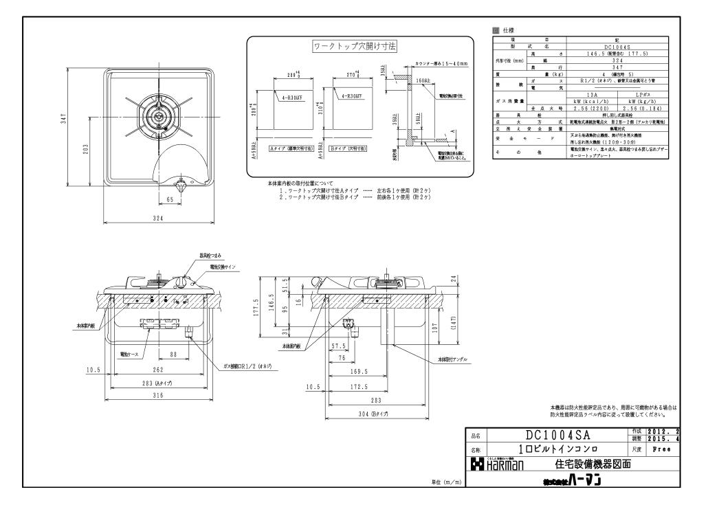 ハーマンガスコンロ(1口)都市ガス DC1004SA-13A 運賃込み