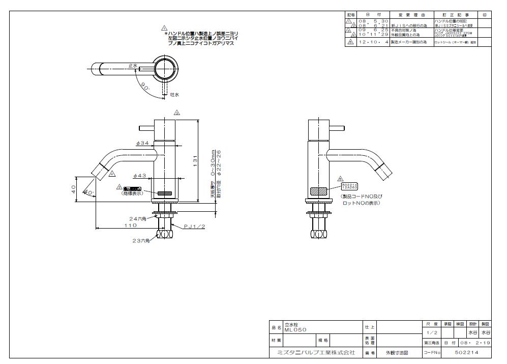 ミズタニバルブ工業製(老舗水栓専業メーカー)