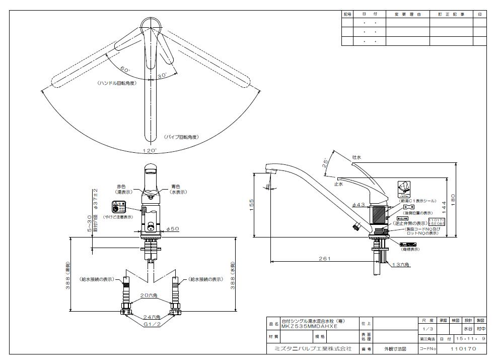 - 吐水バルブの回転角度に角度規制が付いた仕様