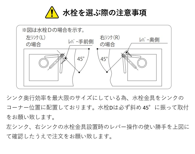ワイドサイズ(mm)は750・900・1200・1500、奥行は600だけでなく省サイズの450もご用意しています 奥行450のキッチンは、ワンルームなどの狭い空間を、有効かつ快適に住まう為にお勧めです。コンパクト設計でも、水栓を横奥に設置し、シンクをできるだけ広く設計し工夫しているので、ほぼ機能性は落ちません。